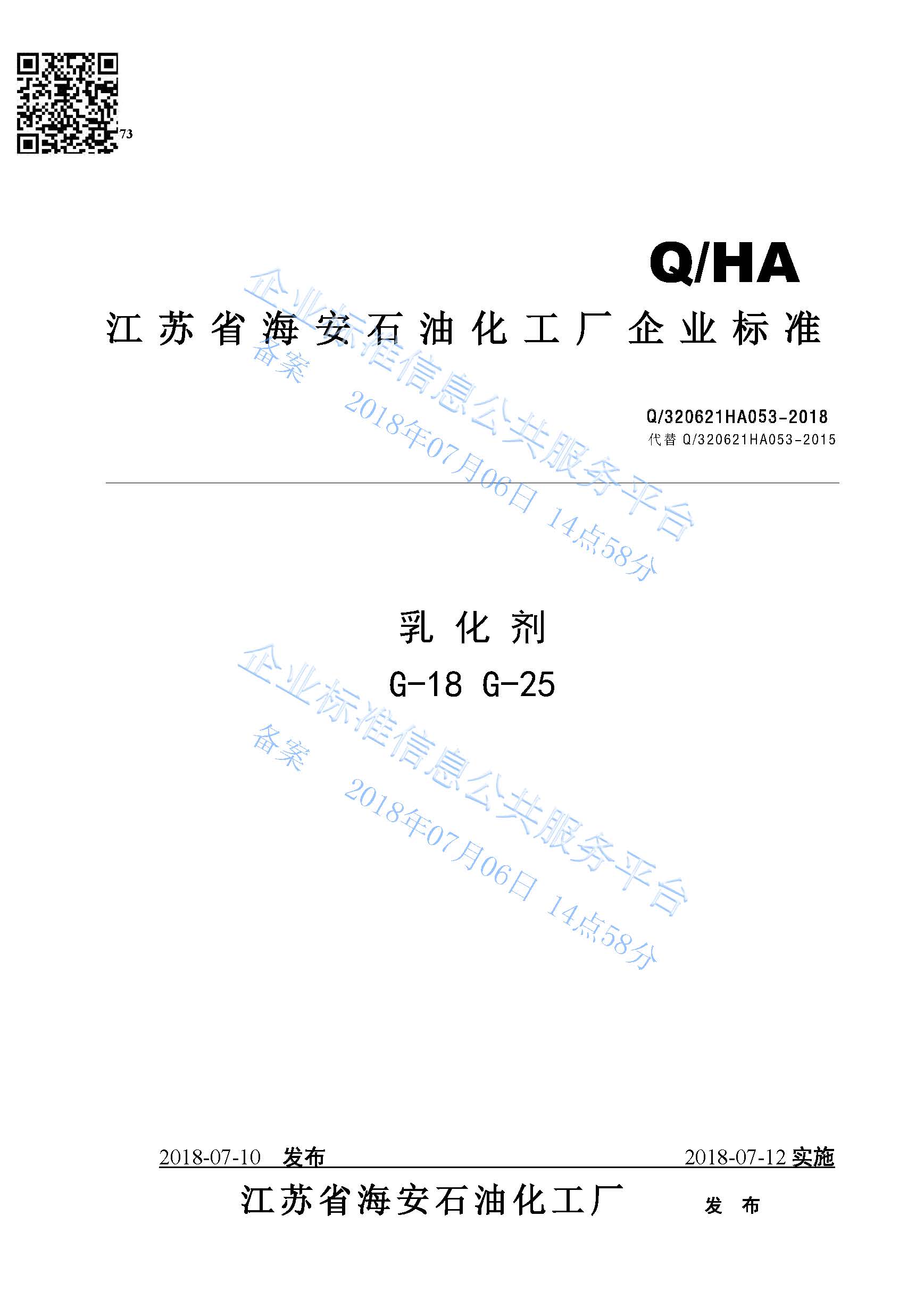 Q/320621HA053-2018 乳化剂G-18 G-2