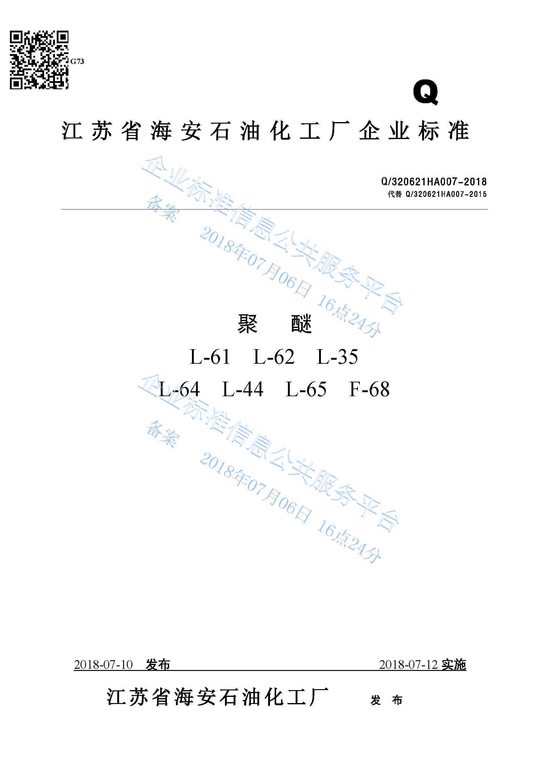 Q/320621HA007-2018 聚醚L-61 L-62