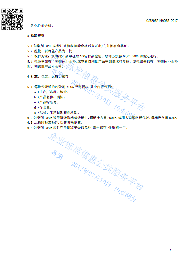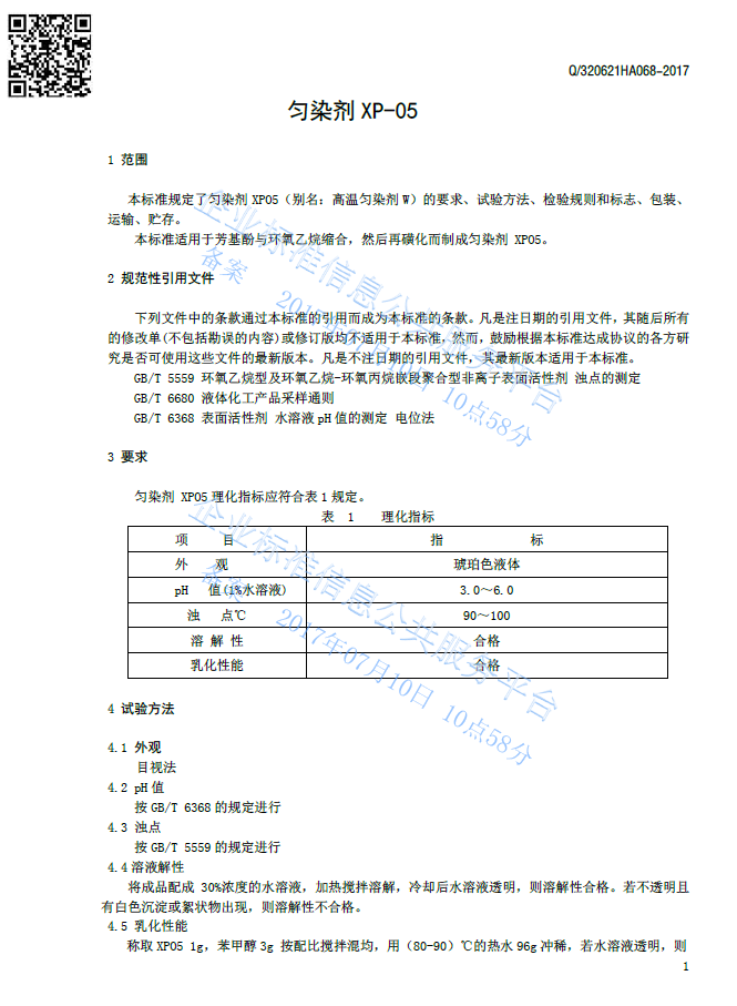 Q320621HA068-2017 匀染剂XPO5最新产品标准