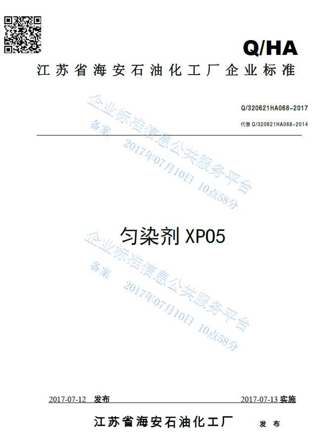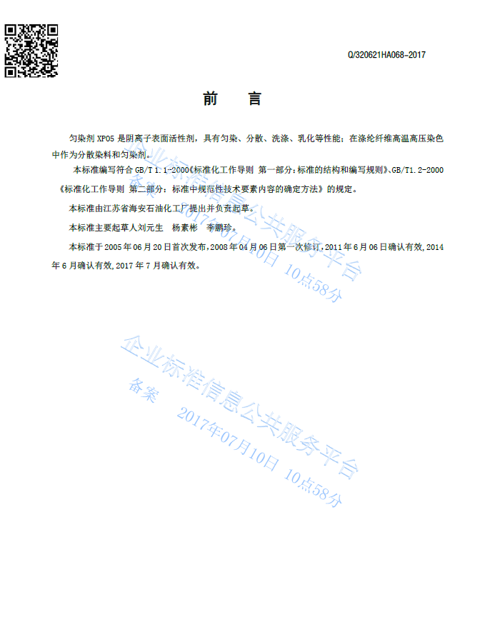 Q/320621HA068-2017 匀染剂XP05产品标准