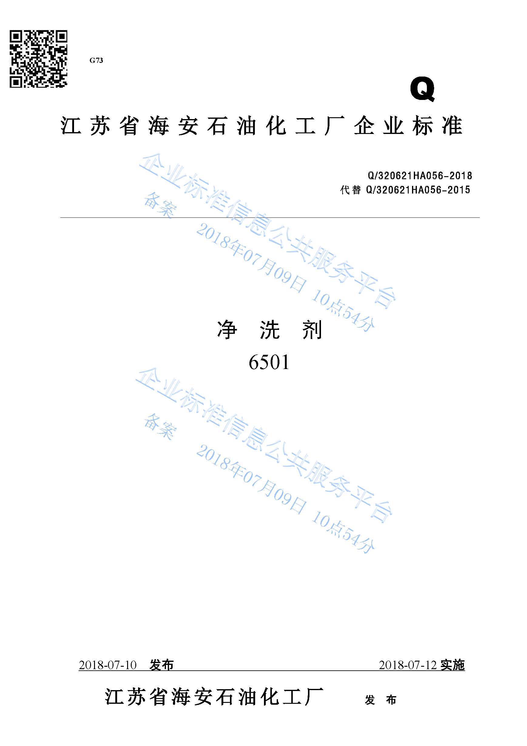 Q/320621HA056-2018 净洗剂6501产品标准