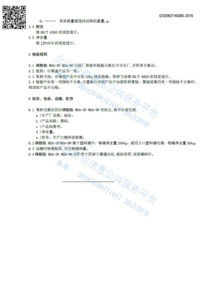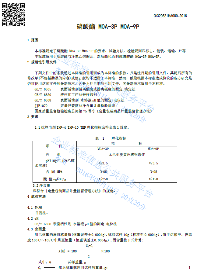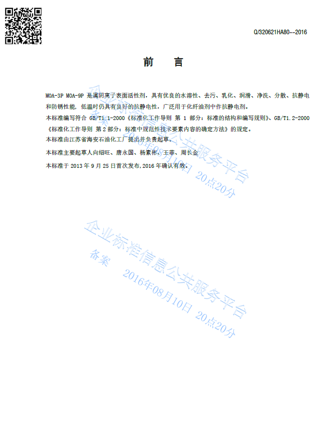 Q/320621HA080-2016 磷酸酯MOA-3P MOA-9P产品标准