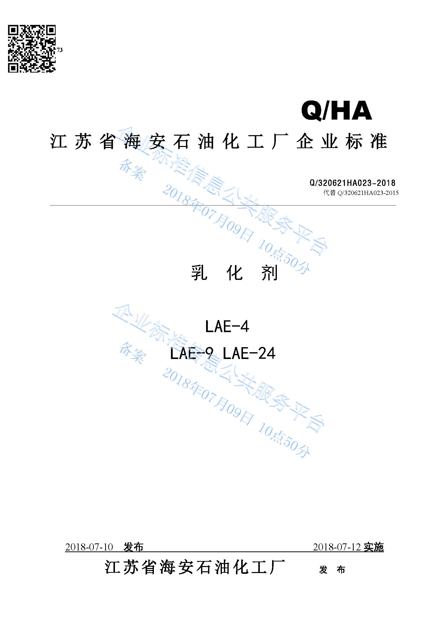 Q/320621HA023-2018 乳化剂LAE-4 LA