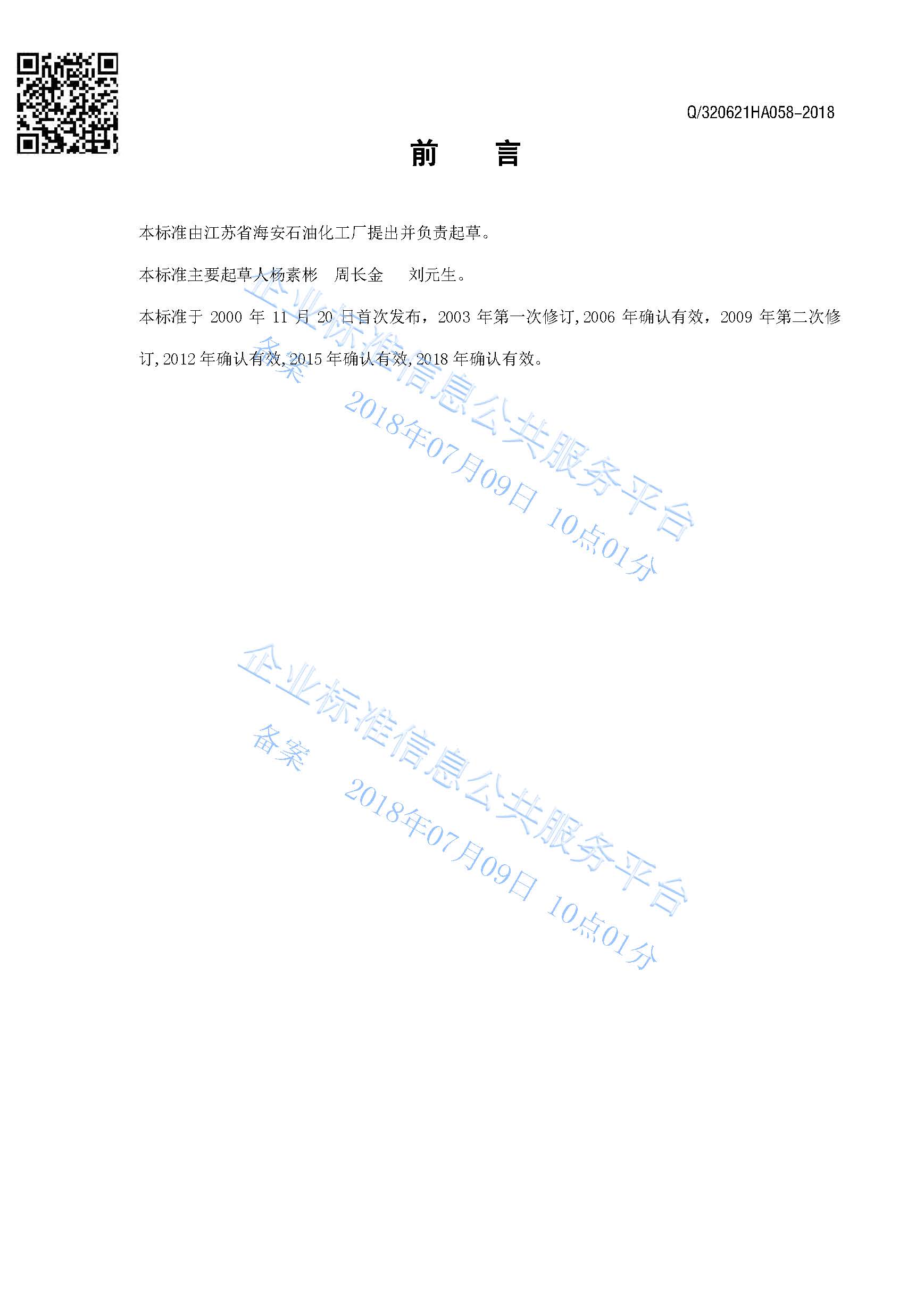 Q/320621HA008-2018 乳化剂O-3 O-5