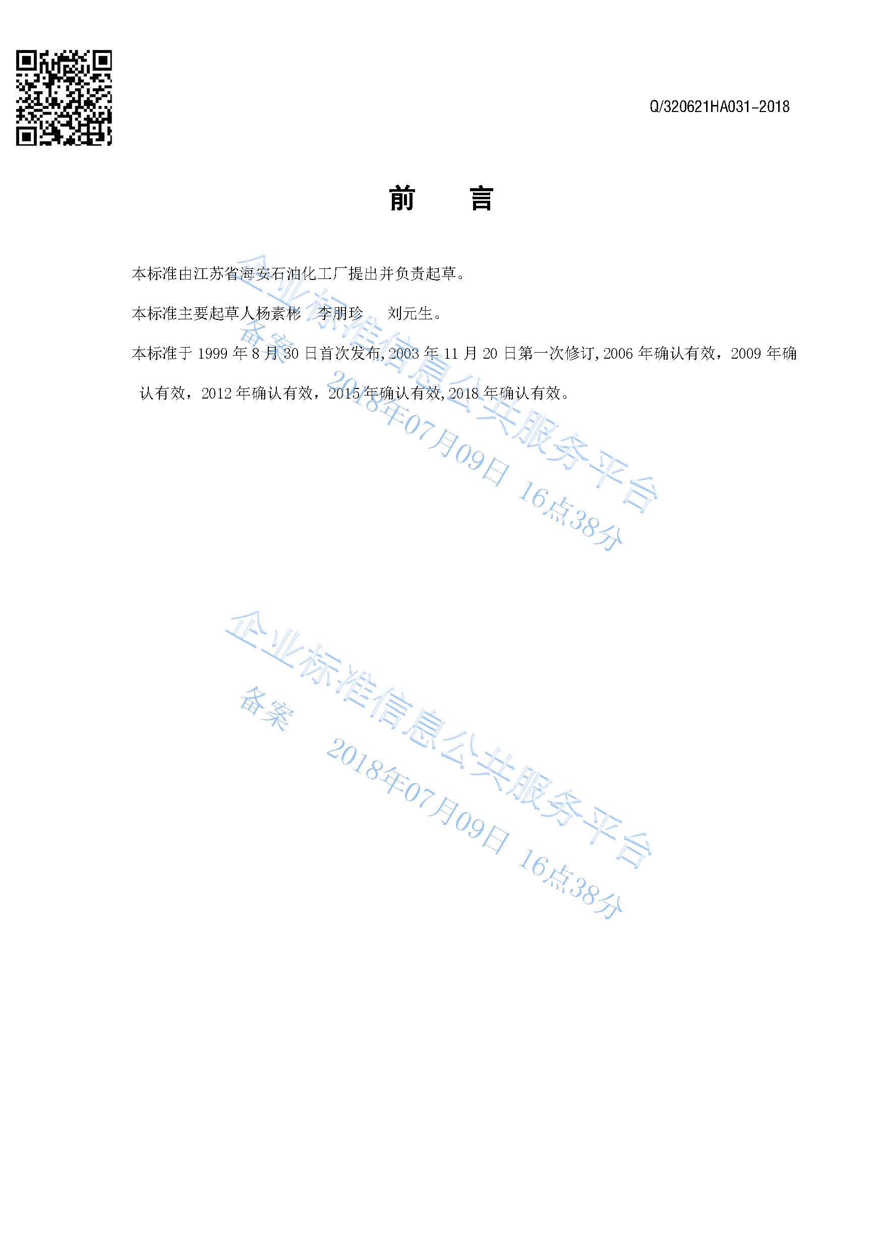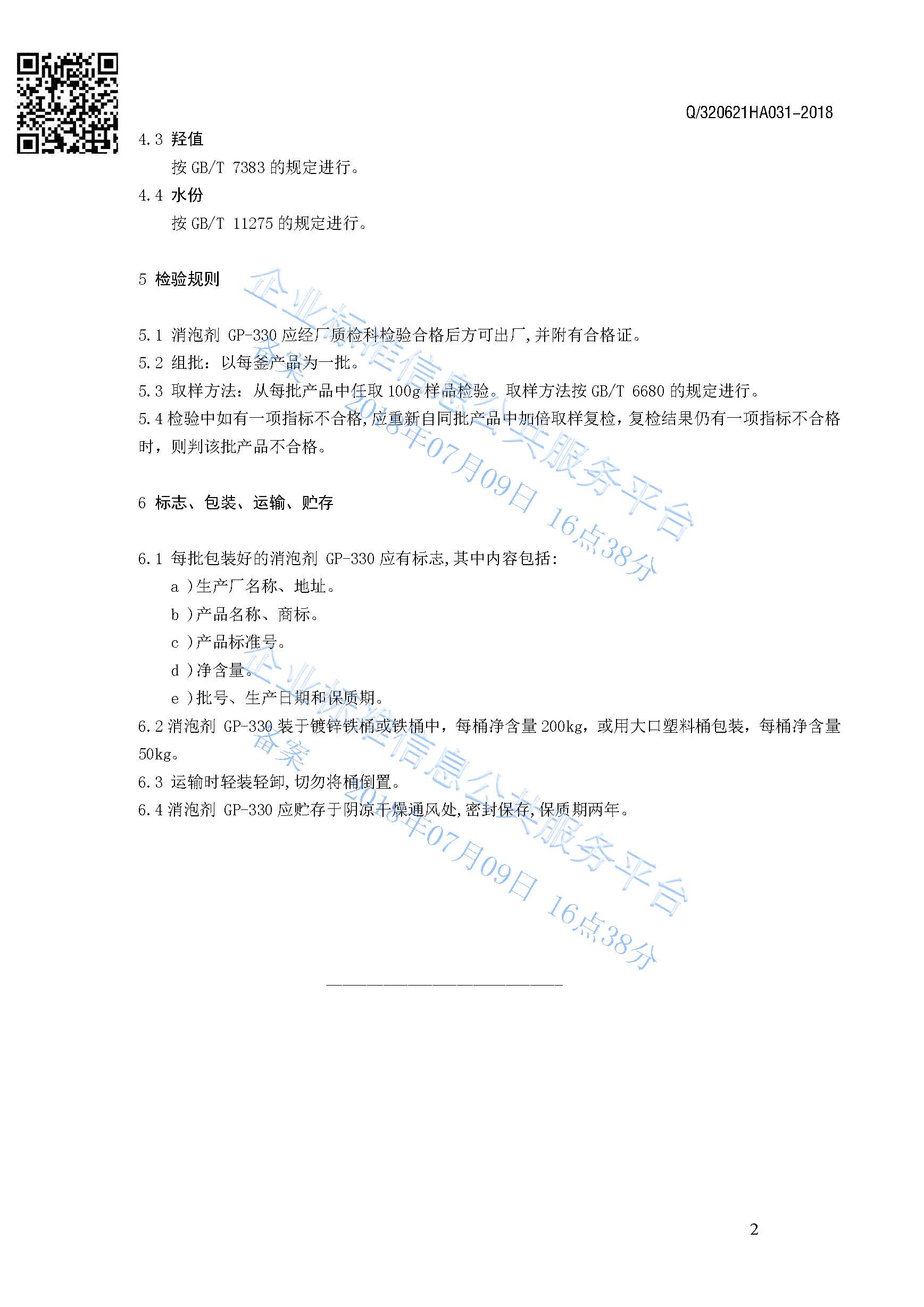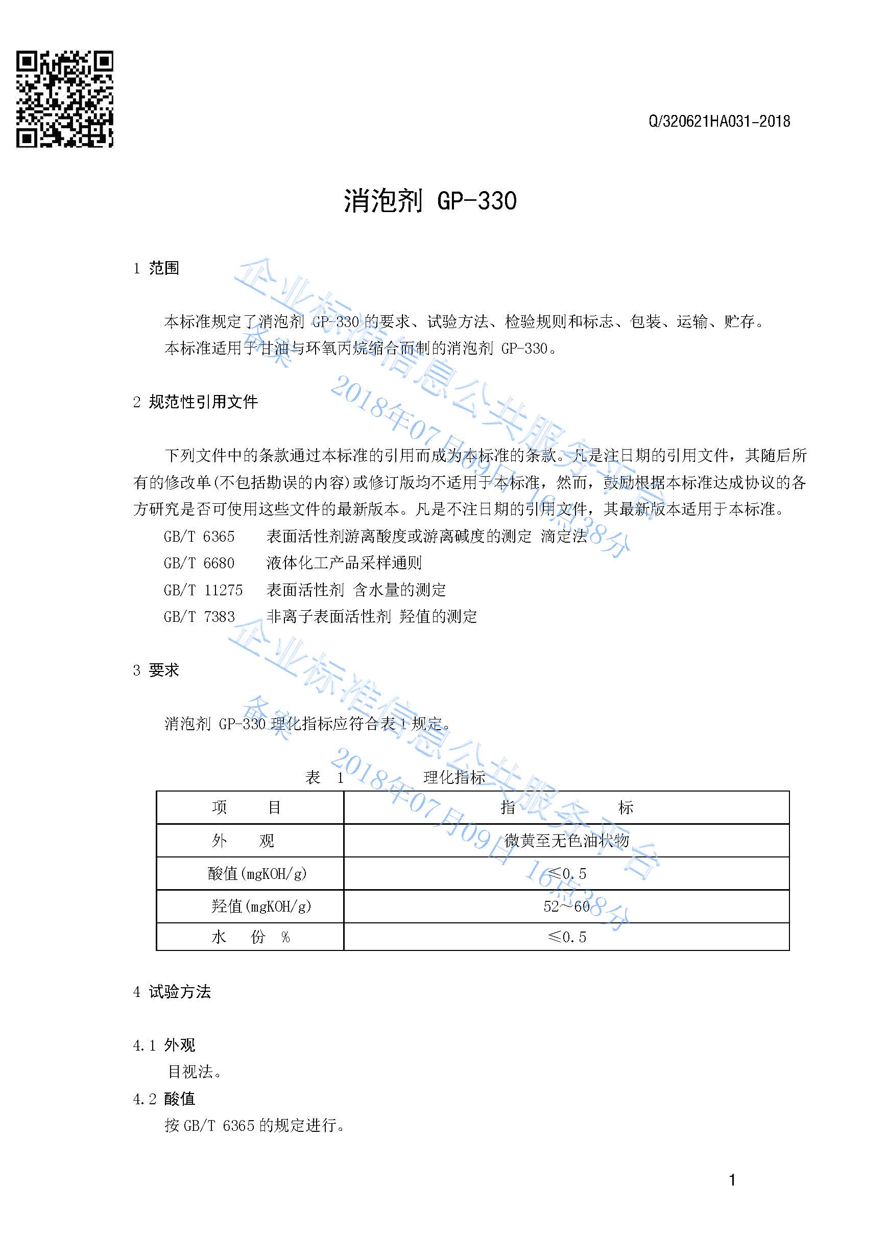 Q/320621HA031-2018 消泡剂GP-330产品标准
